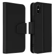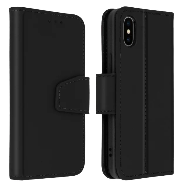 Vrhunska usnjena torbica za iPhone XS Max, preklopna denarnica in stojalo za video - crna