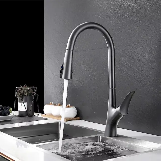 Vrhunski razred | Dizajn kuhinjske pipe | Mešalna armatura s prikazovalnikom temperature in gibljivo cevjo | Elipse