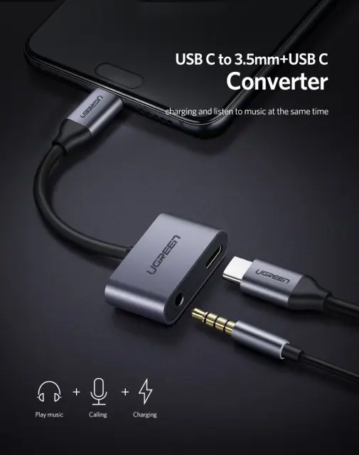 UGREEN USB-C polnilni adapter je zasnovan tako, da vam nudi 3,5-mm vtič za povezavo vaših najnovejših pametnih telefonov USB-C, ki so odstranili aux priključek. S tem zvočnim adapterjem lahko še vedno uporabljate vaše najljubše slušalke, saj deluje tako kot vaš zadnji telefon s 3,5-milimetrskim vtičem.
