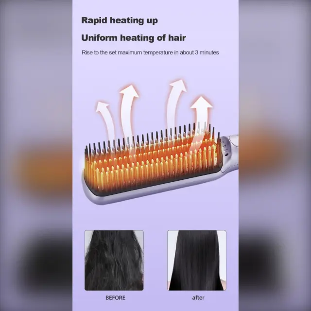 Ionska keramična tehnologija: Keramične plošče na tej krtači za ravnanje las zagotavljajo enakomerno porazdelitev toplote, preprečujejo poškodbe in spodbujajo zdrave lase. Vgrajeni ionski generator sprošča negativne ione, nevtralizira pozitivne ione, ki povzročajo kodranje in statiko. Rezultat so bolj gladki, sijoči in bolj obvladljivi lasje z vsako uporabo. Ne glede na to, ali imate tanke, debele, kodraste ali ravne lase, bo ionska keramična tehnologija poskrbela, da bodo vaši lasje videti najbolje. Uživajte v rezultatih salonske kakovosti v udobju svojega doma.