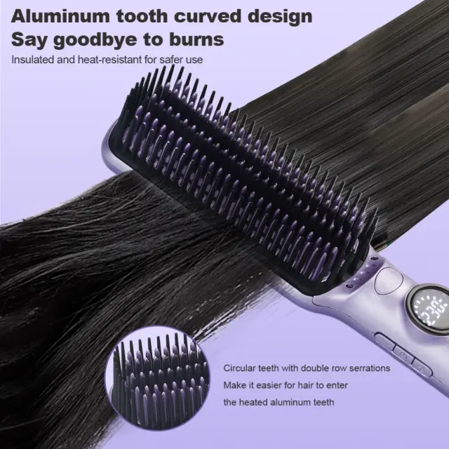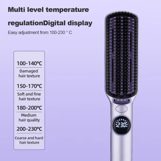 Varna in priročna zasnova: Opremljena z grelcem PTC, se ta krtača za ravnanje las hitro segreje in ohranja enakomerno temperaturo. Funkcija samodejnega izklopa izklopi napravo po eni uri nedejavnosti, kar zagotavlja varnost in preprečuje nesreče. 360-stopinjski vrtljivi kabel omogoča fleksibilno oblikovanje brez zapletanja. Številne nastavitve temperature ustrezajo različnim tipom las in željam glede oblikovanja. S svojo kombinacijo varnostnih funkcij in uporabniku prijazne zasnove je ta krtača za ravnanje las popolna za vsakodnevno uporabo.