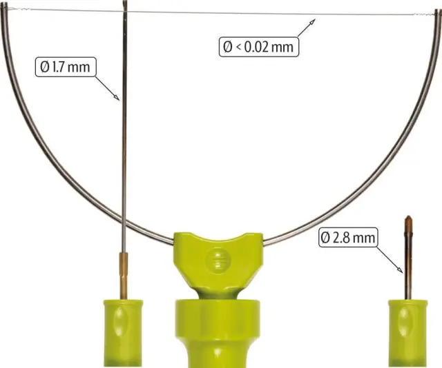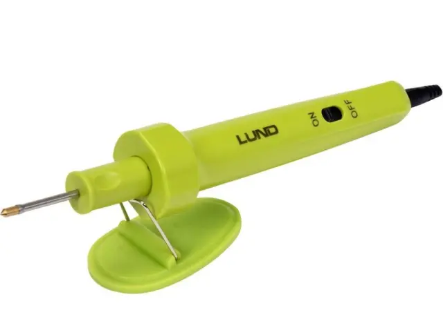 – konica z nožem, dolga 10 cm. Delovna konica s koničastim koncem vam omogoča, da začnete rezati kjer koli. Konica se segreva po celotni dolžini, zato je idealna za delo z listi debeline do 10 cm.