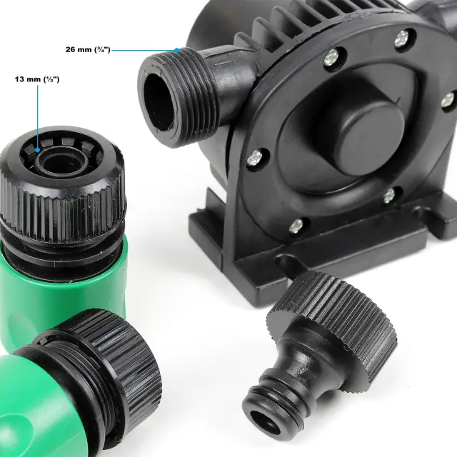 Črpalka je idealna za menjavo vode v vašem vrtnem ribniku ali akvariju, praznjenje vodne postelje ali za druga odvodnjavanja v vaši hiši ali na dvorišču. Upoštevajte, da črpalka deluje samo, ko se vrtalnik vrti v smeri urinega kazalca.