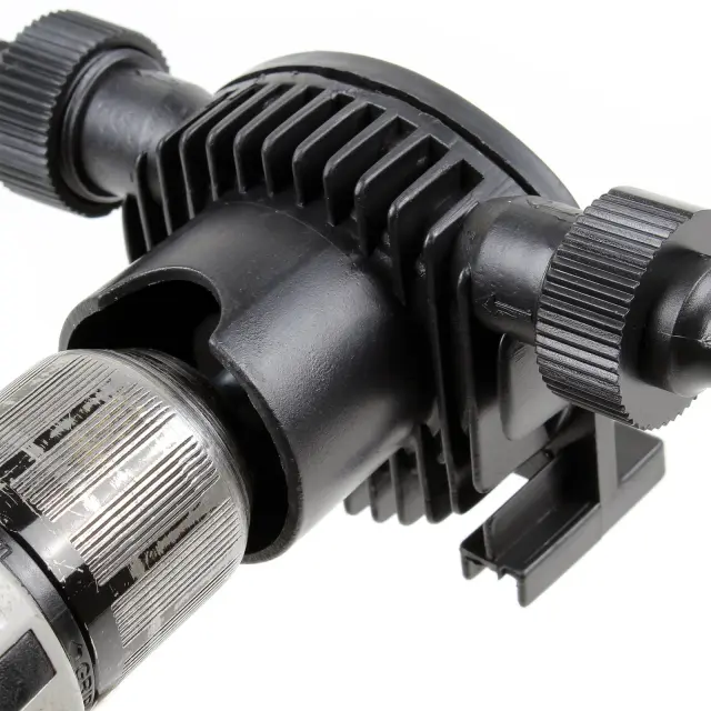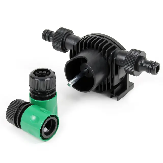 Črpalko nato vstavimo v vpenjalno glavo vrtalnega stroja in vodne cevi so pritrjene na črpalko. S prilagajanjem hitrosti vrtalnika lahko uravnavate količino vode, ki jo je treba črpati.