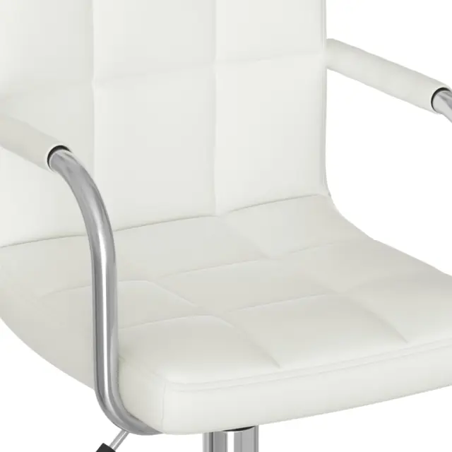 Ta vrtljiv stol je oblečen v umetno usnje, ki je enostavno za čiščenje, in debelo podložen, zato je zelo udoben in vzdržljiv. Črn prašno premazan jeklen okvir zagotavlja izjemno trdnost in stabilnost. Ker ima stol plinski dvižni mehanizem, lahko višino nastavite glede na svoje potrebe. Stol se tudi vrti za 360 stopinj, zato zagotavlja odlično fleksibilnost.