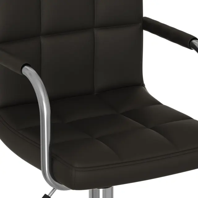 Ta vrtljiv stol je oblečen v umetno usnje, ki je enostavno za čiščenje, in debelo podložen, zato je zelo udoben in vzdržljiv. Črn prašno premazan jeklen okvir zagotavlja izjemno trdnost in stabilnost. Ker ima stol plinski dvižni mehanizem, lahko višino nastavite glede na svoje potrebe. Stol se tudi vrti za 360 stopinj, zato zagotavlja odlično fleksibilnost.