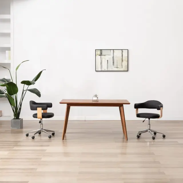 Vrtljiv pisarniški stol - Računalniški stol črn ukrivljen les in umetno usnje