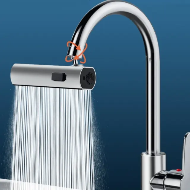 Nadzor vrtenja za 360°: Ta vrtljiva pipa omogoča enostavno vrtenje za 360 stopinj, kar vam omogoča popoln nadzor nad smerjo toka vode. Dosezite vsak kotiček svojega umivalnika za učinkovito izpiranje in čiščenje.