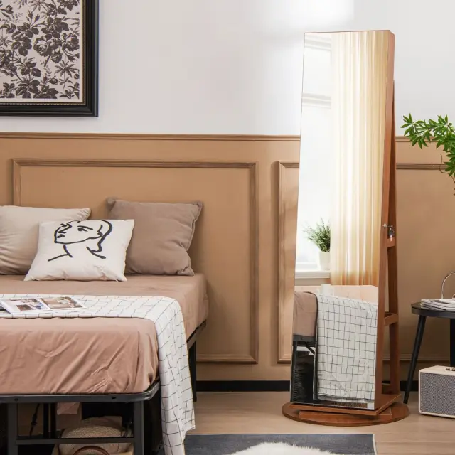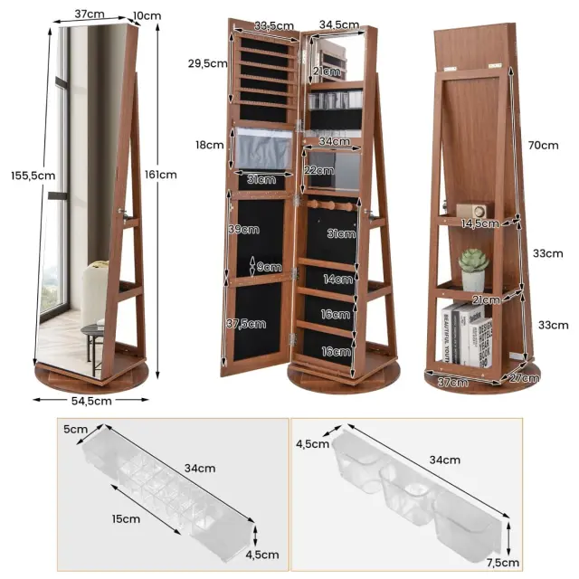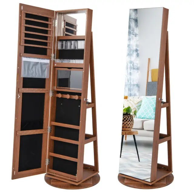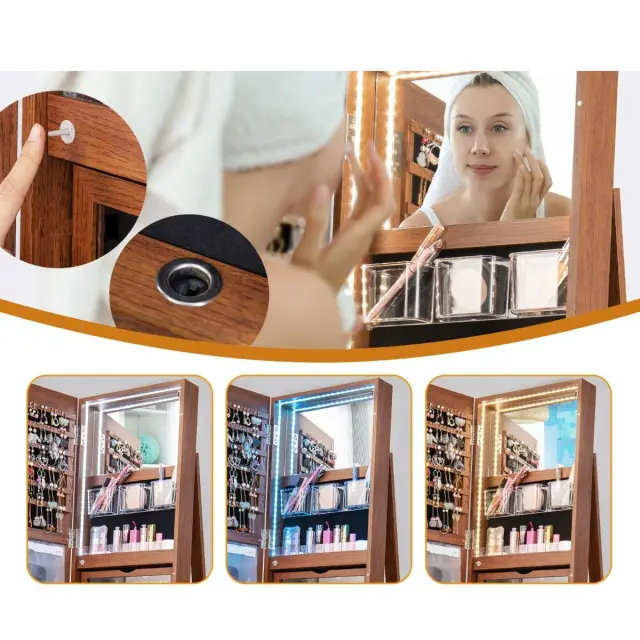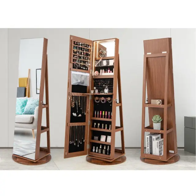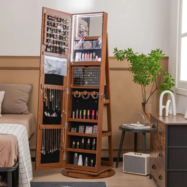Vrtljiva omarica za nakit z ogledalom in LED Toaletni pripomočki
