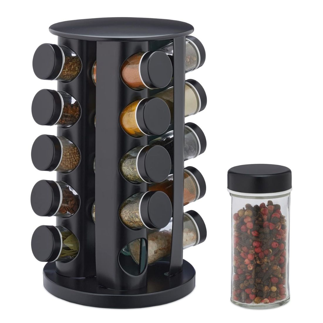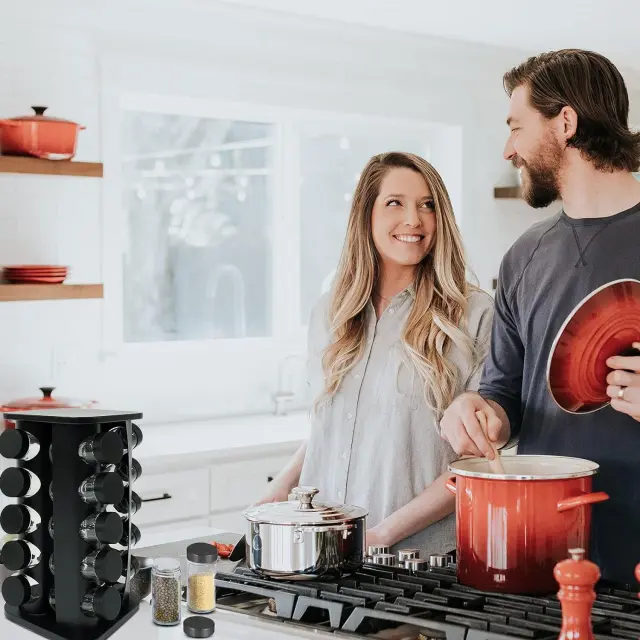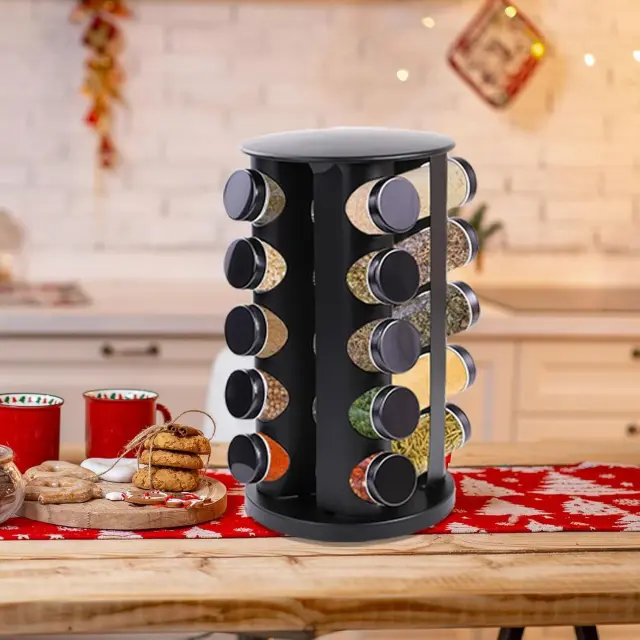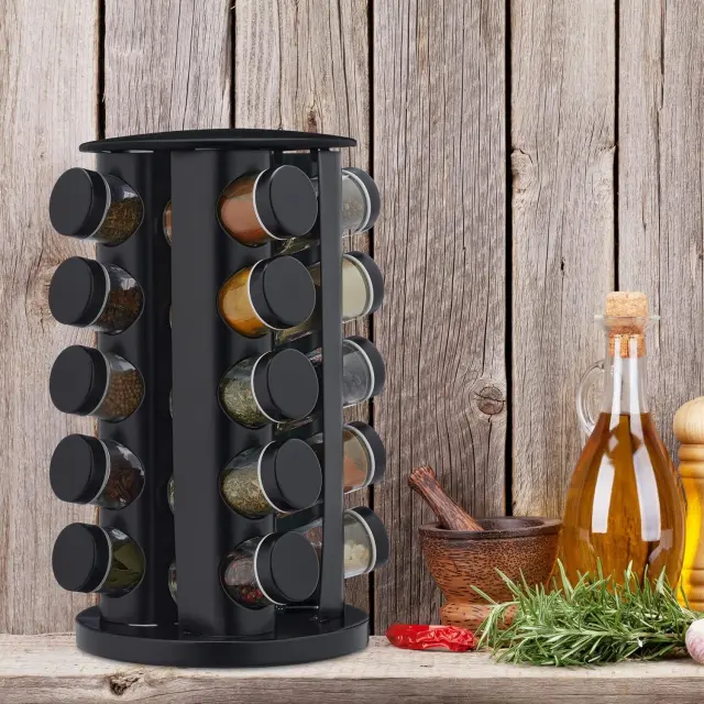 To vrtljivo stojalo za začimbe prinaša funkcionalnost in slog v vsako kuhinjo.
