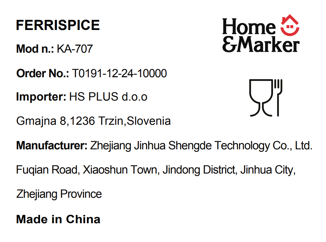 Podatki o proizvajalcu vključujejo informacije (naziv, naslov, državo in elektronski naslov) povezane s proizvajalcem izdelka.