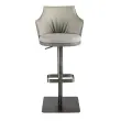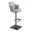 Vrtljiv barski stol z nasloni za roke sodobnega dizajna s sedežem, oblazinjenim v sivo melirano tkanino, in naslonjalom v temno sivo umetno usnje. Noge iz temno poliranega nerjavečega jekla v avantgardnem in hkrati brezčasnem slogu ga naredijo nepogrešljivega v kuhinji ali jedilnici. Ta stol znamke Angel Cerdá združuje edinstven slog z največjim udobjem in stabilnostjo zaradi kakovostnega oblazinjenja in originalne konstrukcije nog. Nastavljiva višina sedeža omogoča prilagoditev glede na potrebe ter zagotavlja večje udobje