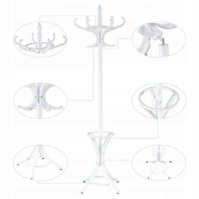 Naš obešalnik za plašče je odličen pripomoček za vzdrževanje reda v vašem domu. Klobuke, plašče, torbice in dežnik lahko prosto postavite na urejeno mesto. 12 kljukic zagotavlja dovolj prostora za obešanje. Odlično se prilega tudi v kot, ne da bi zavzel veliko prostora v predsobi ali spalnici. S svojim preprostim in elegantnim videzom je stojalo za plašče prava paša za oči v vsakem prostoru. Montaža je preprosta.