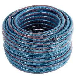4 plastna PVC vrtna cev z delovno močjo 8bar. Maximalna moč 24 bar. Temperatura -10C do +60C. Odporen na UV in alge. Brez kamdija, barija, svinca in ftalata. Dolžina 30m, 1".