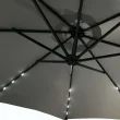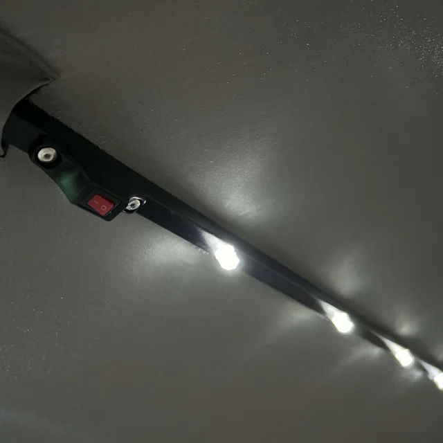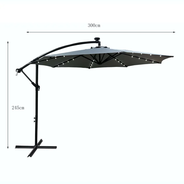 LED senčnik MILIN svetlo siva je izjemna ponudba za tiste, ki iščejo moderne in izvirne rešitve za svoj vrt. S certificiranimi LED lučmi, ki krasijo vsako od njegovih 8 rok, ustvarja edinstveno vzdušje med poletnimi večeri na terasi. Zahvaljujoč stranski roki lahko enostavno prilagodite njegovo pozicijo glede na čas dneva.