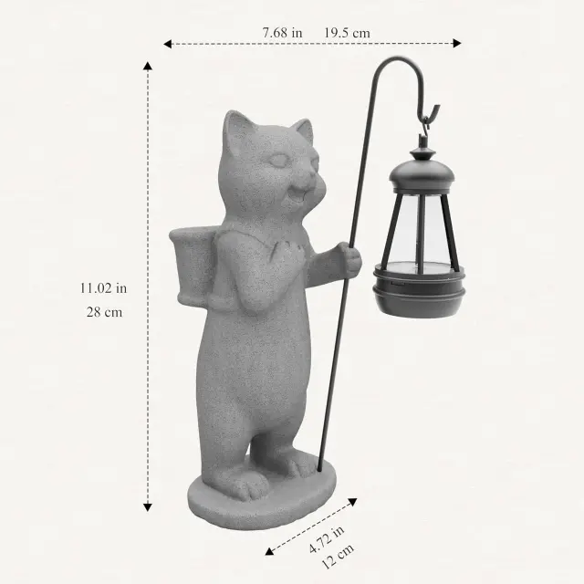 Smolna figurica mačke s solarno svetilko je popolna kombinacija estetske dekoracije in funkcionalne osvetlitve, ki je odporna na vse vremenske razmere. Solarni sistem poskrbi za samodejno delovanje in ustvarjanje prijetnega ambienta, medtem ko trpežna smola zagotavlja dolgotrajno uporabo brez izgube kakovosti. Izberite to unikatno figurico in osvetlite svoj vrt z očarljivim poudarkom, ki bo pritegnil poglede vseh obiskovalcev.