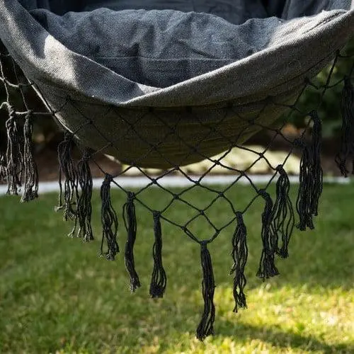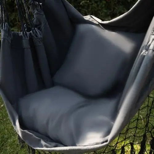 NARAVNI MATERIALI + 2 BLAZINI – Material omogoča pravilno zračenje , kar ohranja udobje uporabe visečega stola tudi v vročih dneh . Dodatno smo gugalnici dodali dve zelo udobni blazini.