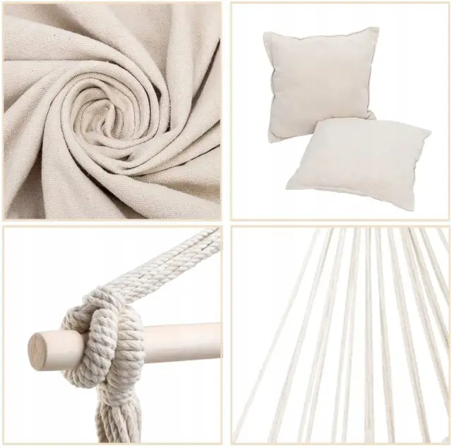 LESENA PALICA – zahvaljujoč temu, da ima viseča mreža leseno palico, omogoča udobno držo med počitkom. V njej lahko prosto berete in opazujete okolico . Popoln za trajno namestitev na vrtu, terasi ali v sobi.