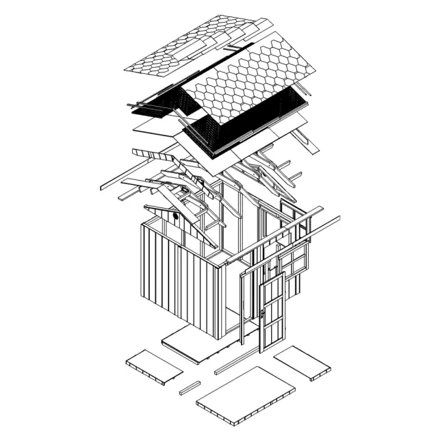 Vrtna hišica vrhunske kakovosti 5,9 m² - V252x250x294 cm - s tlemi in bitumenskimi ploščicami - TIMBELA M913-CAVERN STEEL