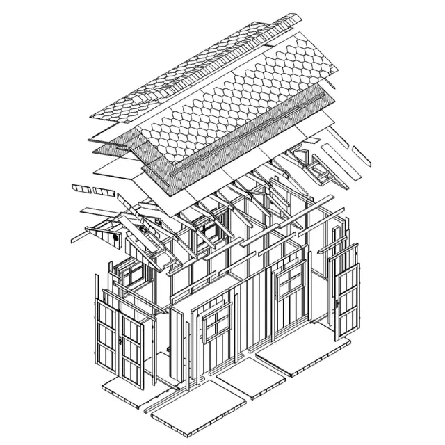 Vrtna hišica vrhunske kakovosti 8,52 + 2,95 m² - V252x250x530 cm - s tlemi in bitumenskimi ploščicami - TIMBELA M915C