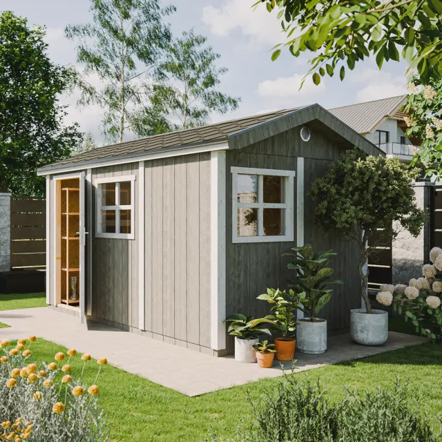 Vrtna hišica vrhunske kakovosti 8,68 m² - V252x250x412 cm - s tlemi in bitumenskimi ploščicami - TIMBELA M914-REDWOOD RED