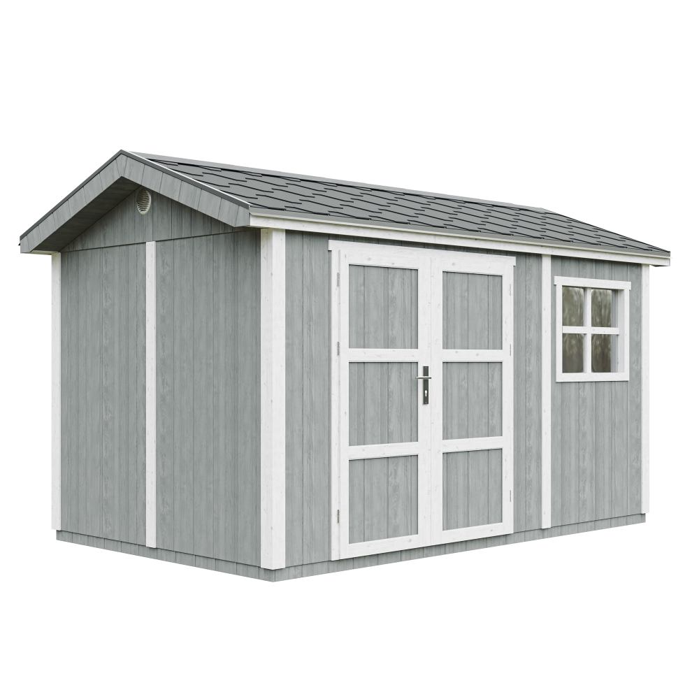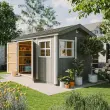 Vrtna hišica vrhunske kakovosti 8,68 m² - V252x250x412 cm - s tlemi in bitumenskimi ploščicami - TIMBELA M914A-CAVERN STEEL