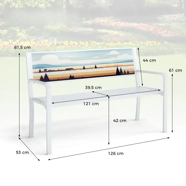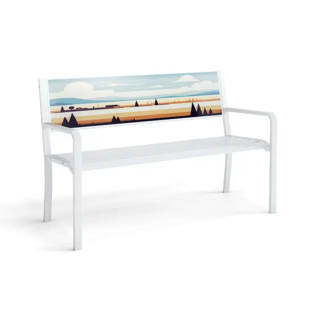 Vrtna klop z grafiko na naslonu Terasna klop bela