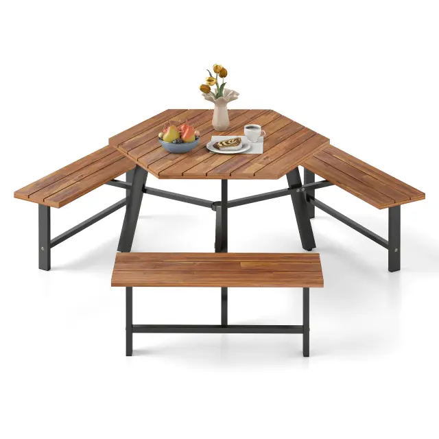 Velika miza za piknik s tremi klopmi, primerna za 6 oseb