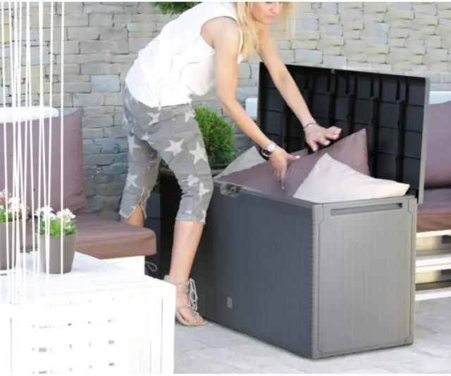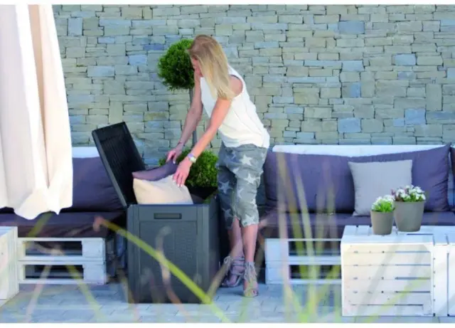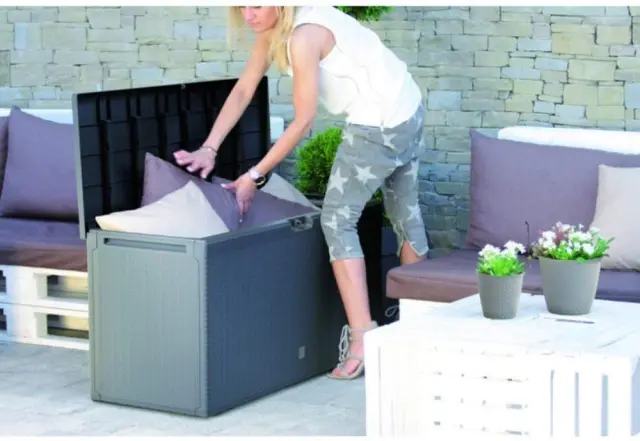 Lahka konstrukcija zagotavlja ustrezno prezračevanje in zaščito pred nenadnim dežjem za različne predmete, shranjene v notranjosti – blazine za vrtno pohištvo, odeje, vrtne pripomočke, manjše pohištvo ali igrače za otroke.
