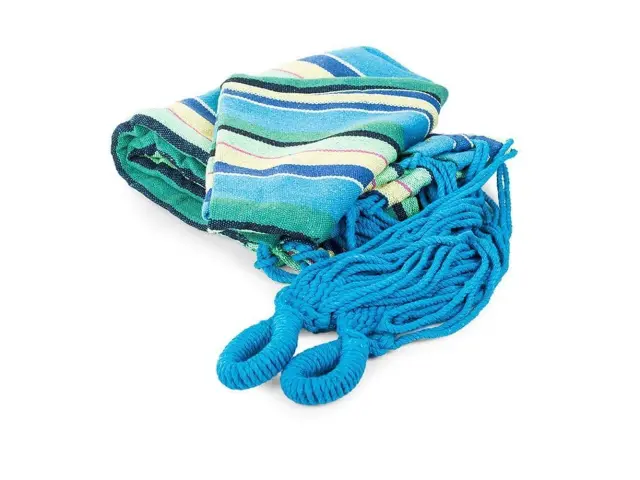 Viseča mreža je izdelana iz trpežnega materiala, prav tako debelo tkane vrvice. Zaradi vsega tega je viseča mreža trpežna in zračno prepustna, zaradi česar je zelo prijetna za uporabo.Zvit zavzame zelo malo prostora, zato ga enostavno prestavite drugam ali pospravite doma ali v stanovanju. Preprosto ga pospravite v priloženo torbo za prenašanje – zlahka ga boste spravili v nahrbtnik