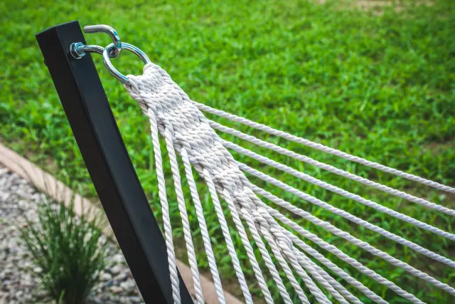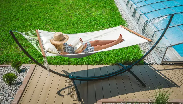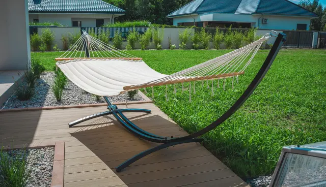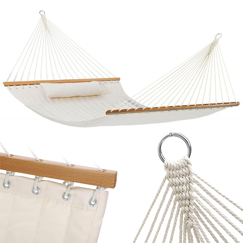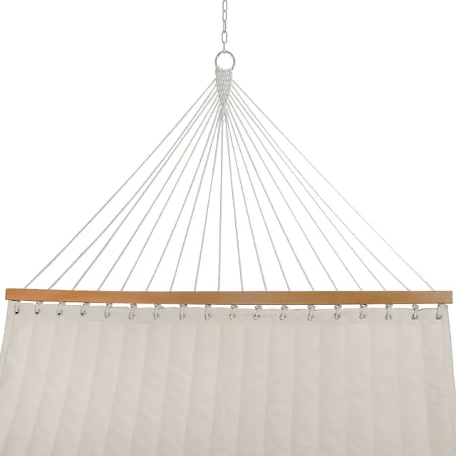 Vrtna viseča mreža z blazino, prešita, za dve osebi, bež, s prečko, gugalnica