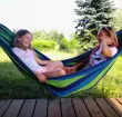 Z dimenzijami 190×160 cm in izjemno nosilnostjo do 150 kg je ta viseča mreža zasnovana za udobno ležanje dveh oseb, kar jo naredi popolno izbiro za pare ali družine. Izdelana iz visokokakovostnega, trpežnega bombažnega platna, ta mreža zagotavlja dolgotrajno uporabo in odpornost na vremenske vplive, kar je idealno za vsak zunanji prostor, bodisi na vrtu, terasi ali balkonu.