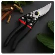 Ergonomske in udobne: vrtne škarje imajo ročaj iz PP+TPR, ki je ergonomsko oblikovan, da se udobno prilega vaši roki in zmanjšuje utrujenost rok med dolgotrajno uporabo. Mehka prevleka zagotavlja varen oprijem tudi v mokrih razmerah.