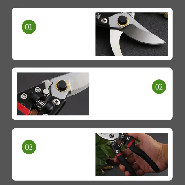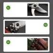 Ostro in natančno rezanje: te škarje, opremljene z visokokakovostnimi rezili iz nerjavečega jekla, zagotavljajo ostre in čiste reze na vejah in steblih do določenega premera. Natančno rezanje spodbuja zdravo rast rastlin.