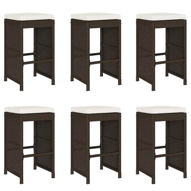 Vrtni barski stolčki - Stol za vrt z blazinami 6 kosov rjav poli ratan JS232