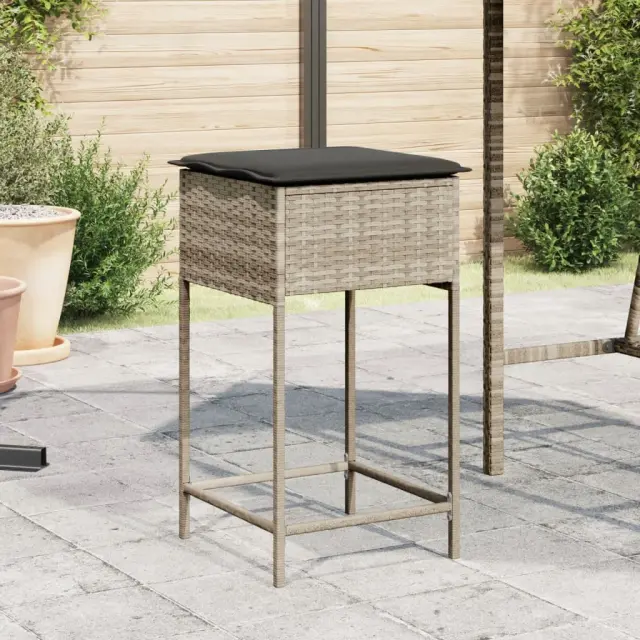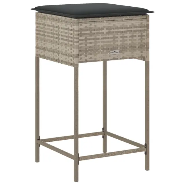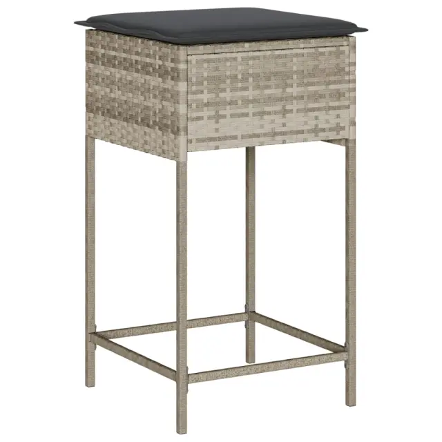 Vrtni barski stolčki - Stol za vrt z blazinami 2 kosa svetlo siv poli ratan JS224
