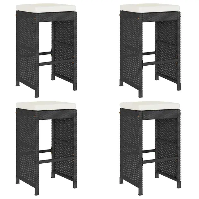 Vrtni barski stolčki - Stol za vrt z blazinami 4 kosi črn poli ratan JS225
