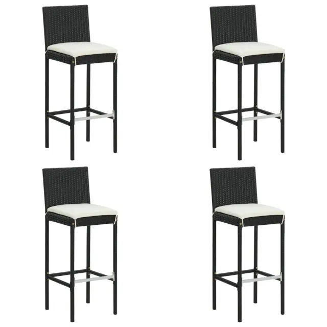 Vrtni barski stolčki - Stol za vrt z blazinami 4 kosi črn poli ratan JS227