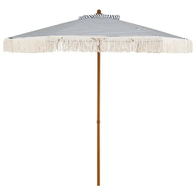 Vsestranska uporaba: Ta dežnik z elegantno črto, okrašeno z bombažnimi čopki, ki se zibljejo v vetru, je privlačen in idealen kos zunanjega pohištva. Na terasi, vrtu, ob bazenu ali v kavarnah in na tržnicah na prostem je odličen dodatek.