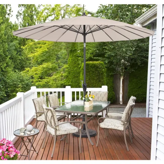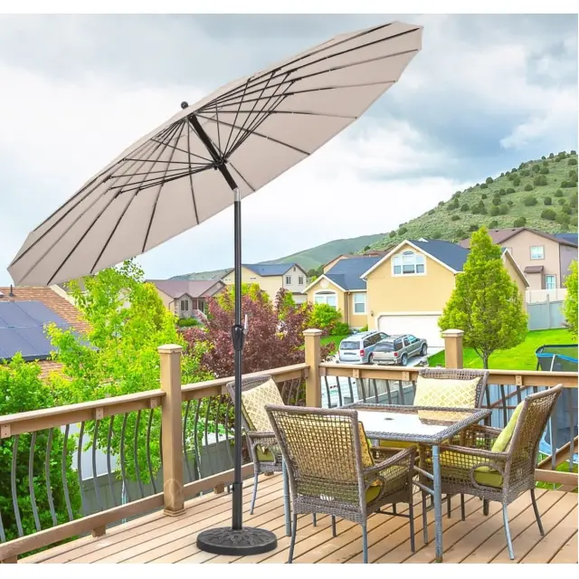 Izboljšana stabilna struktura: senčnik za teraso je podprt s trdnim ogrodjem iz 18 reber iz steklenih vlaken, zato je odlično odporen proti vetru. Poleg tega je za lahek aluminijast drog značilna odpornost proti rjavenju, kar zagotavlja stabilnost in dolgotrajno uporabo.