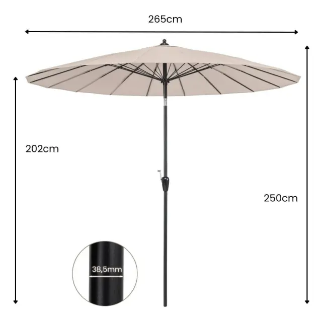 Širok spekter uporabe: Zahvaljujoč lahki zasnovi je enostaven za postavitev senčnik za teraso primeren za različne lokacije, vključno z vrtom, bazenom, dvoriščem in plažo. Lahko ga celo kombinirate z zunanjo jedilno mizo in uživate v prostem času z družino ali prijatelji (premer palice: 38,5 mm).