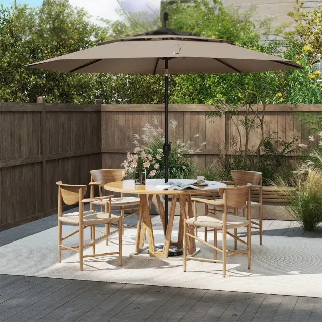 Zahvaljujoč 3-stopenjski prezračevalni zasnovi senčnik omogoča boljše kroženje zraka za sprostitev v vročih poletnih dneh. Poleg tega ta zasnova pomaga zmanjšati pritisk vetra na senčnik in tako zmanjša tveganje, da bi ga sunki vetra prevrnili.