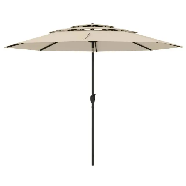 3-stopenjska prezračevana zasnova: zaradi 3-stopenjske prezračevane krošnje senčnik za teraso omogoča boljše kroženje zraka za sprostitev v vročih poletnih dneh. Na splošno ta zasnova pomaga zmanjšati pritisk vetra na senčnik in zmanjšuje tveganje, da bi ga sunki vetra prevrnili.