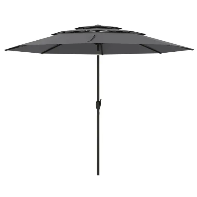Robustna konstrukcija: Robusten senčnik za teraso podpirajo 38 mm debel prašno lakiran kovinski drog in 8 debelih reber, ki tvorijo trdno podlago. Za dodatno stabilnost je priporočljivo, da senčnik pritrdite z obteženim podstavkom (ni priložen).