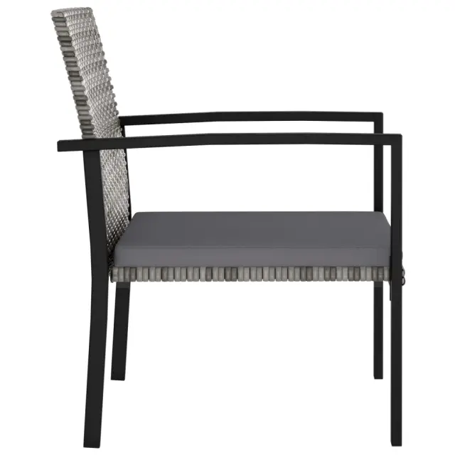 Trden jeklen okvir je ovit v vremensko odporen PE ratan ter zagotavlja, da so jedilni stoli stabilni, trpežni in primerni za uporabo na prostem. Priložene blazine za sedeže prispevajo k udobju med sedenjem. Stoli imajo lahko konstrukcijo, zato jih boste brez težav premikali.