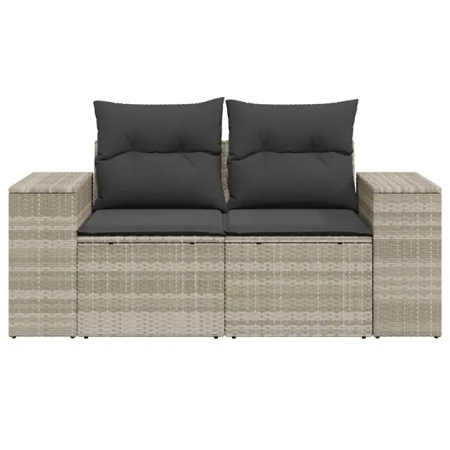 Vrtni kavč - Zunanji kavč z blazinami 2-sedežni svetlo siv poli ratan
