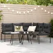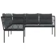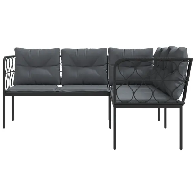 Vrtni kavč - Zunanji kavč z blazinami oblika črke L črno jeklo in tekstilen