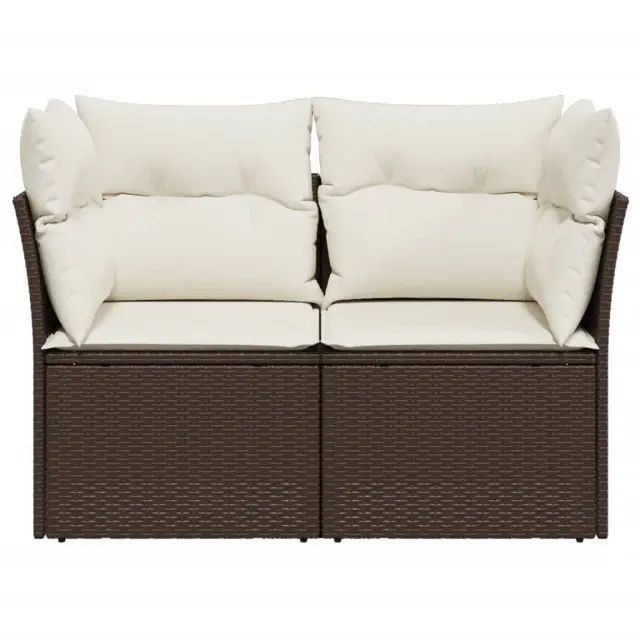 Vrtni kavč - Zunanji kavč z blazinami dvosed rjav poli ratan