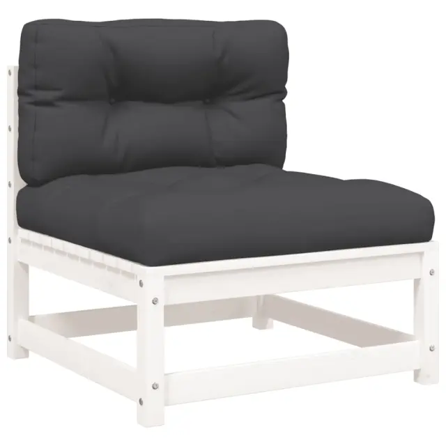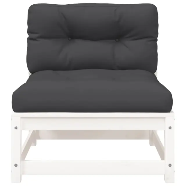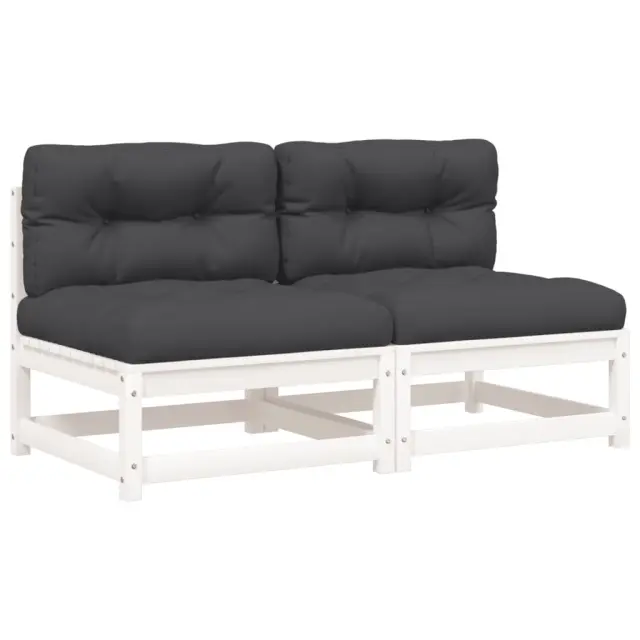 Vrtni kavč - Zunanji kavči brez naslonjal z blazinami 2 kosa bela borovina