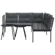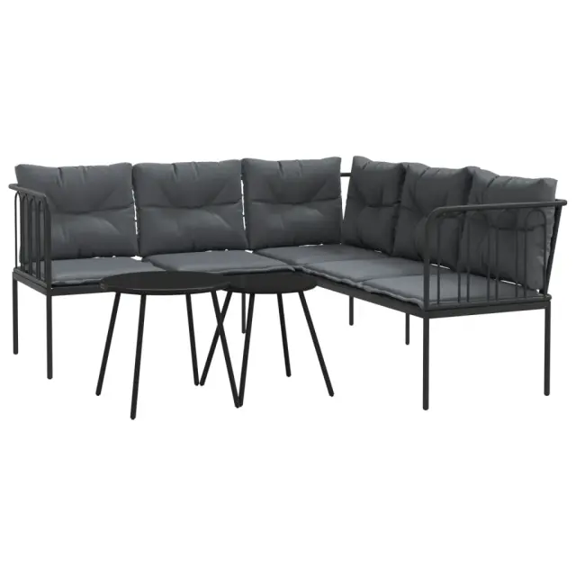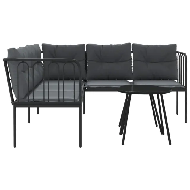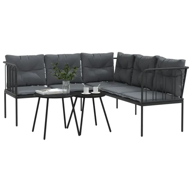 Vrtni kavč - Zunanji kavč z blazinami oblika črke L črno jeklo in tekstilen